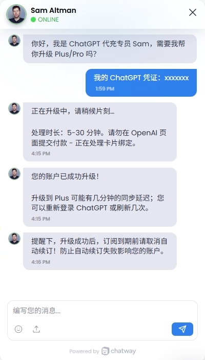 ChatGPT 升级智能体 安全高效丝滑的 Plus/Pro 代充体验 Most Popular 智能体代充 无需提供账号密码 Feature 2 Feature 3 Feature 4 Add to cart Most Popular 传统人工代充 Feature 1 Feature 2 Feature 3 Feature 4 Add to cart Most Popular 卡密代充 无需提供账号密码 Feature 2 Feature 3 Feature 4 Add to cart 让我们红尘作伴 活得潇潇洒洒 策马奔腾 共享 AI 繁华 对酒当歌 唱出心中 Prompt 轰轰烈烈 把握 Token 年华